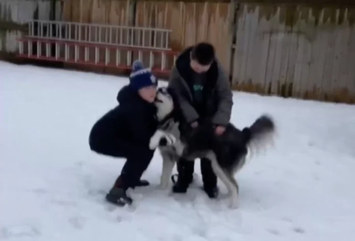 Kad su dani hladni i snijeg prekriva sve oko nas, nekad je dovoljno malo pažnje i topline da “zamrzlo” srce ponovo zablista. Upravo se to dogodilo s jednim usamljenim huskyjem po imenu Levi — dok mu je snijeg pokrivao dvorište, pas je sjedio sam, gotovo bezvoljno, sve dok nije naišao mali prijatelj spreman da ga razveseli.