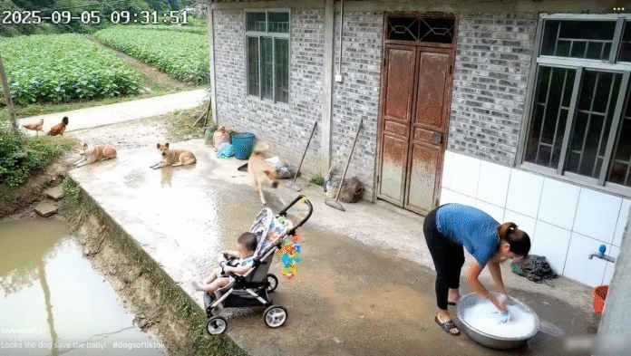 Dana 5. septembra 2025. godine, jedno jutro u ruralnom selu pretvorilo se u prizor čiste drame i herojstva. Na prvi pogled – običan trenutak iz svakodnevice: majka zauzeta pranjem veša, dijete u kolicima, nekoliko pasa koji leže na suncu, i mirna priroda oko njih. Međutim, iza te naizgled idilične slike, odvila se scena koja je mogla završiti tragedijom – da nije bilo jednog izuzetnog psa.